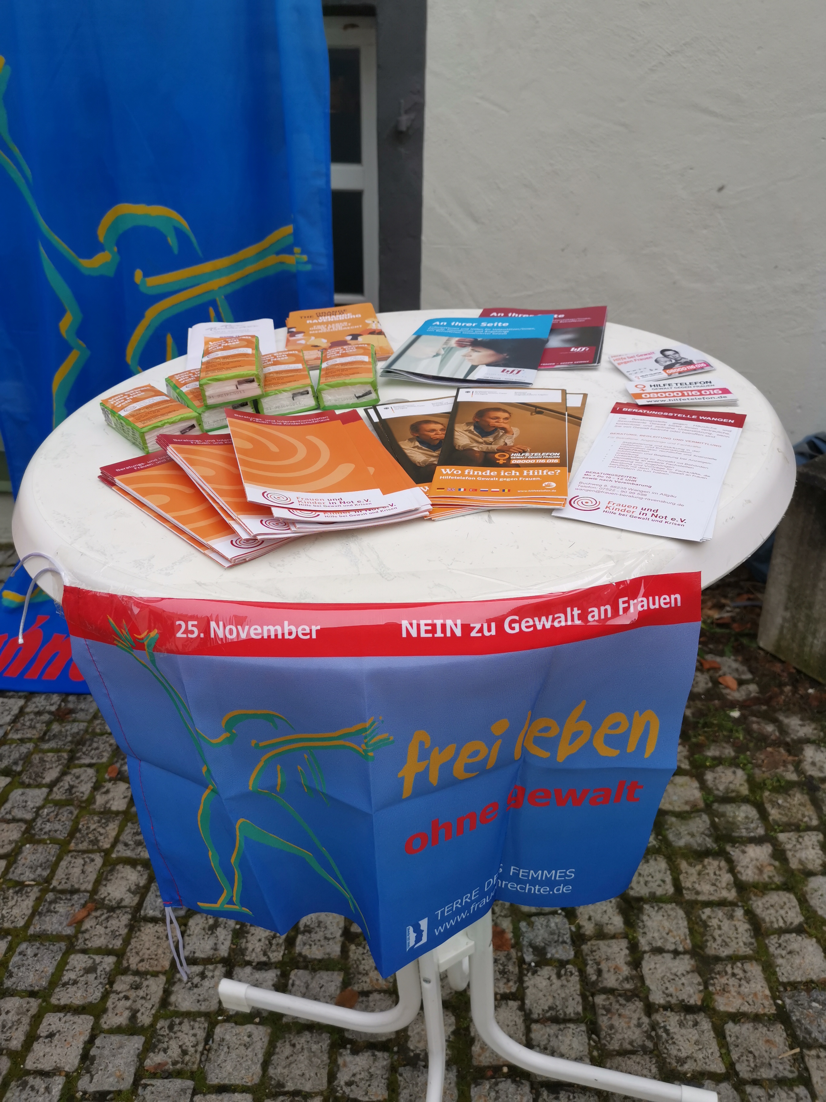 Auch in Leutkirch sind wir am 25.11. zum Internationalen Aktionstag „Nein zu Gewalt an Frauen“ präsent. Vor dem Begegnungscafé Sonnentreff werden Petra Lutz und Ingrid Zuber durch einen Informationsstand vertreten sein.