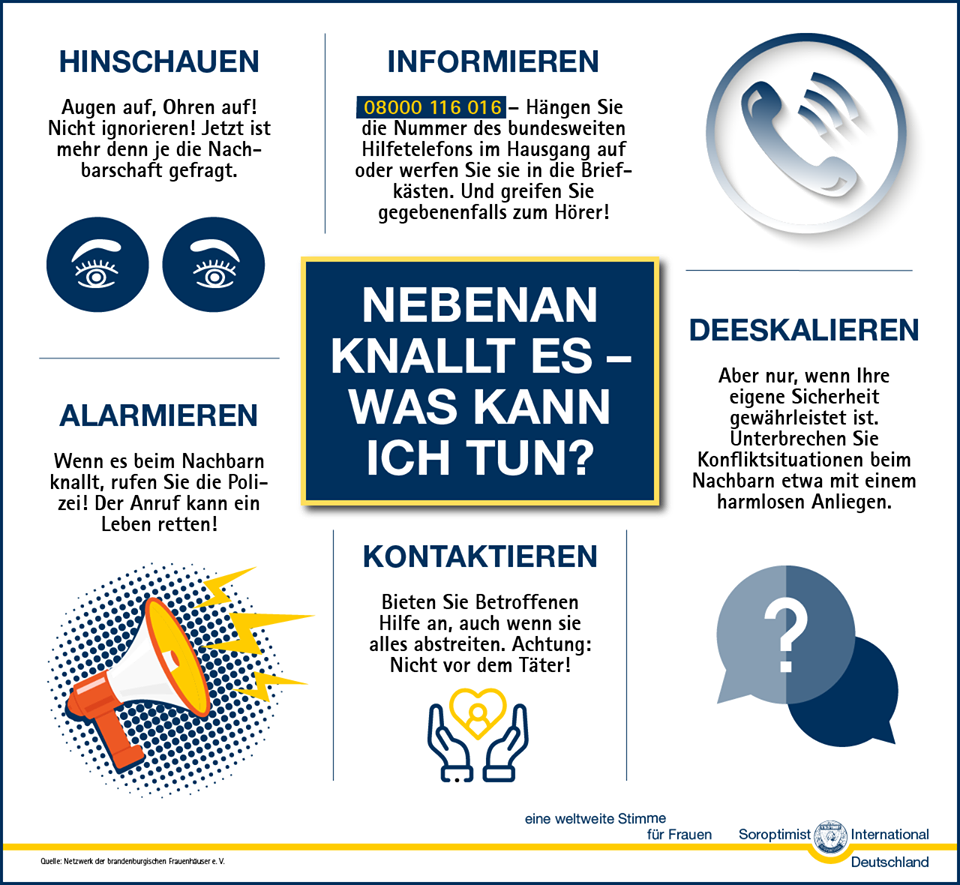 Vor dem Hintergrund der aktuellen Pandemie, wo Menschen zuhause bleiben müssen, sind wir alle umso mehr auf aufmerksame Nachbarn angewiesen. Das Netzwerk der brandenburgischen Frauenhäuser e.V. gibt Hinweise wie jede und jeder von uns helfen kann: