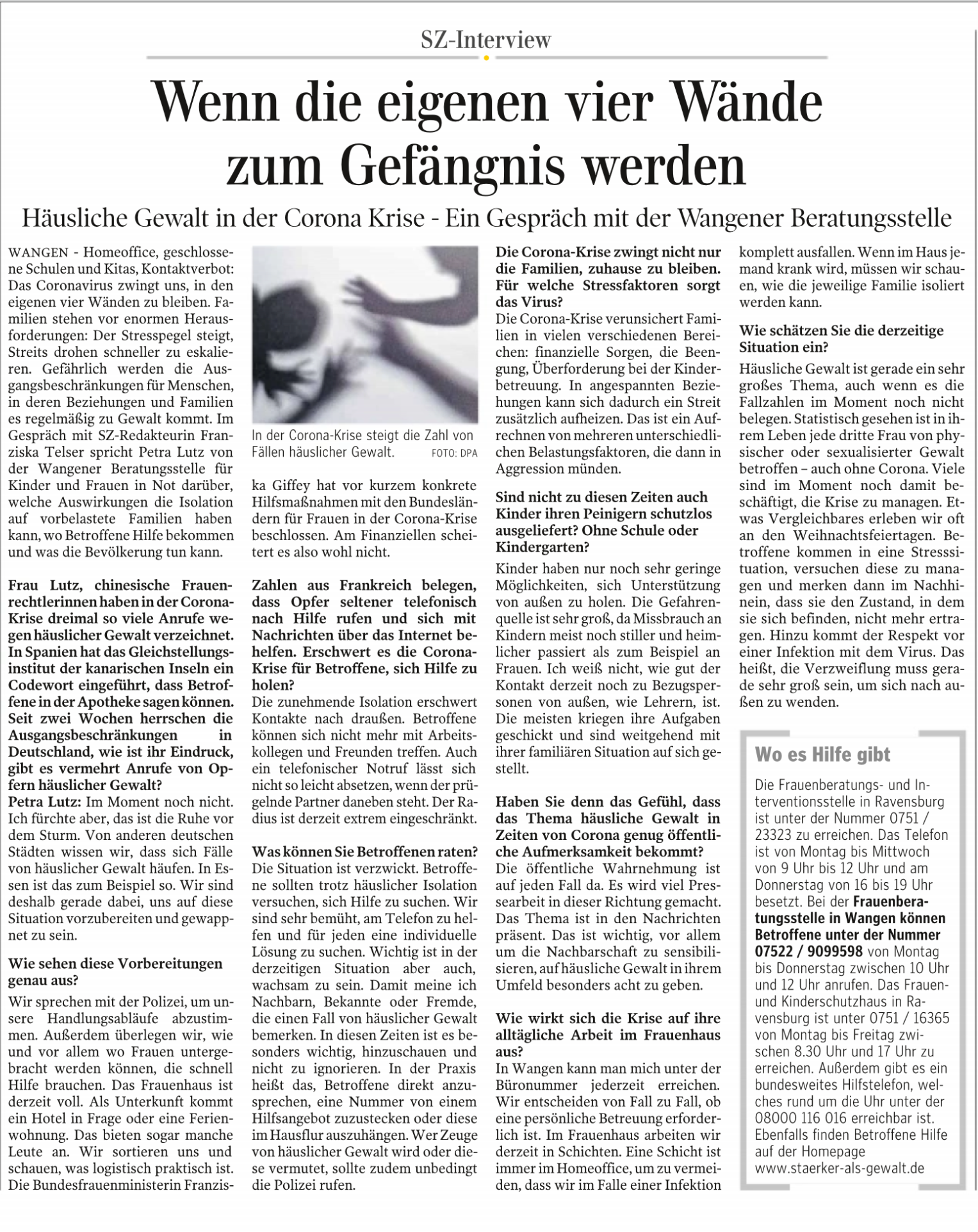 Es wäre ein Gewinn, wenn die Aufmerksamkeit im sozialen Umfeld auch in Zukunft erhalten bleiben würde. Das gesellschaftliche Problem Häusliche und Sexualisierte Gewalt ist für viele Familien Alltag – auch ohne Virus. Laut Dunkelfeldstudien erlebt jede dritte bis vierte Frau im Lauf ihres Lebens geschlechtsspezifische Gewalt von leicht bis lebensgefährlich. Täglich gibt es Tötungsversuche; an jedem dritten Tag stirbt eine Frau an den Folgen von Beziehungsgewalt (BKA-Statistik 2018 BRD).