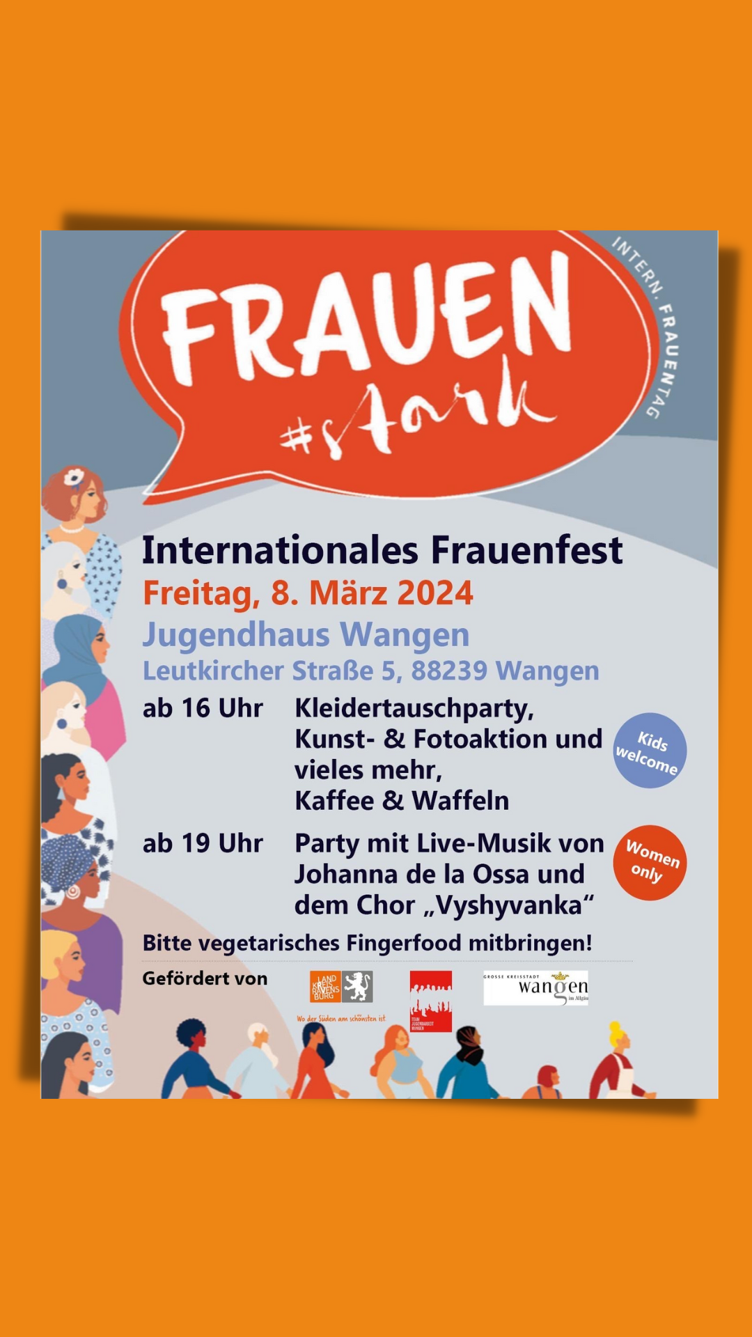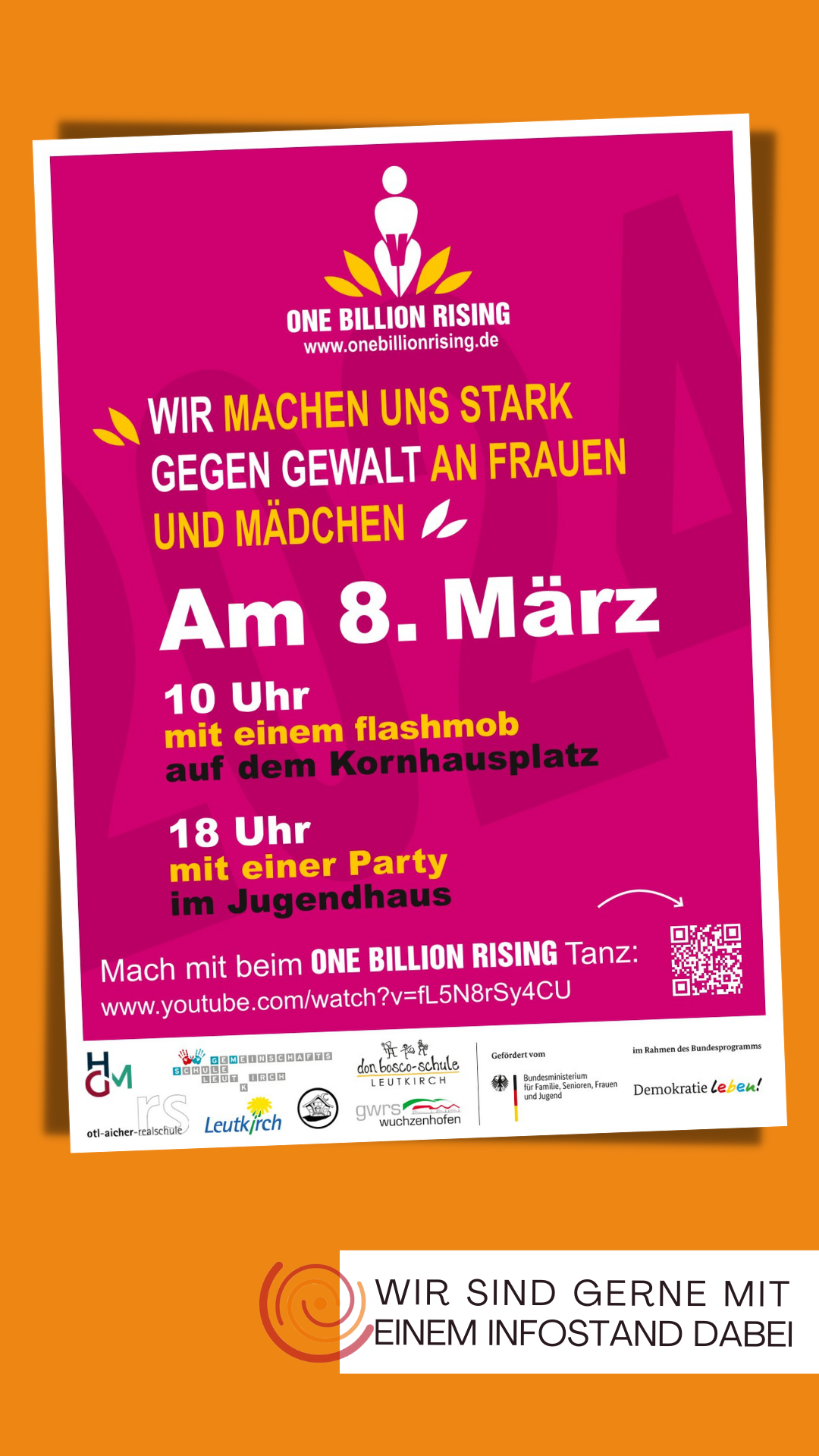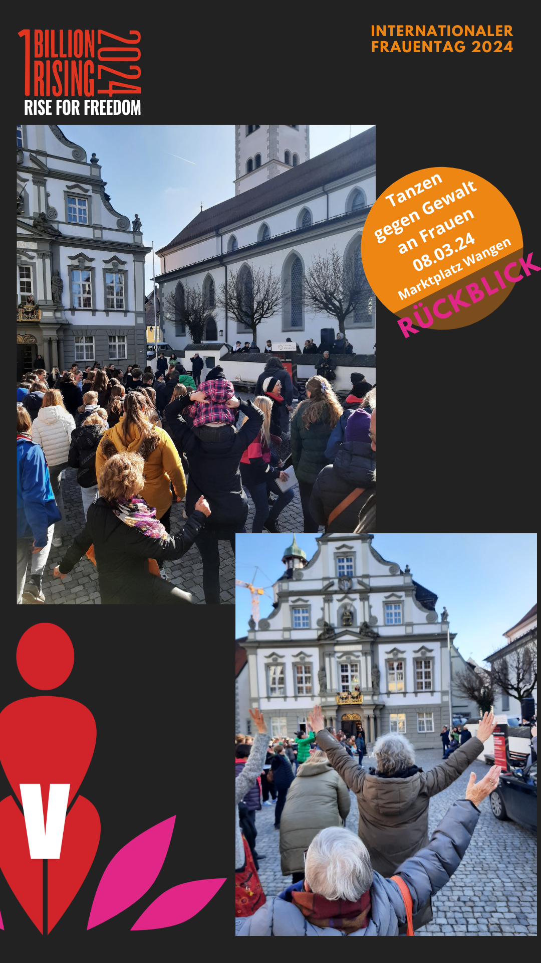 In Wangen fand der aufgrund der Ferien verschobene Tanz zu One Billion Rising auf dem Marktplatz statt. Abends feierten Frauen ein Frauenfest im Jugendhaus. Bei beiden Veranstaltungen war unser Verein mit einem Stand vertreten.