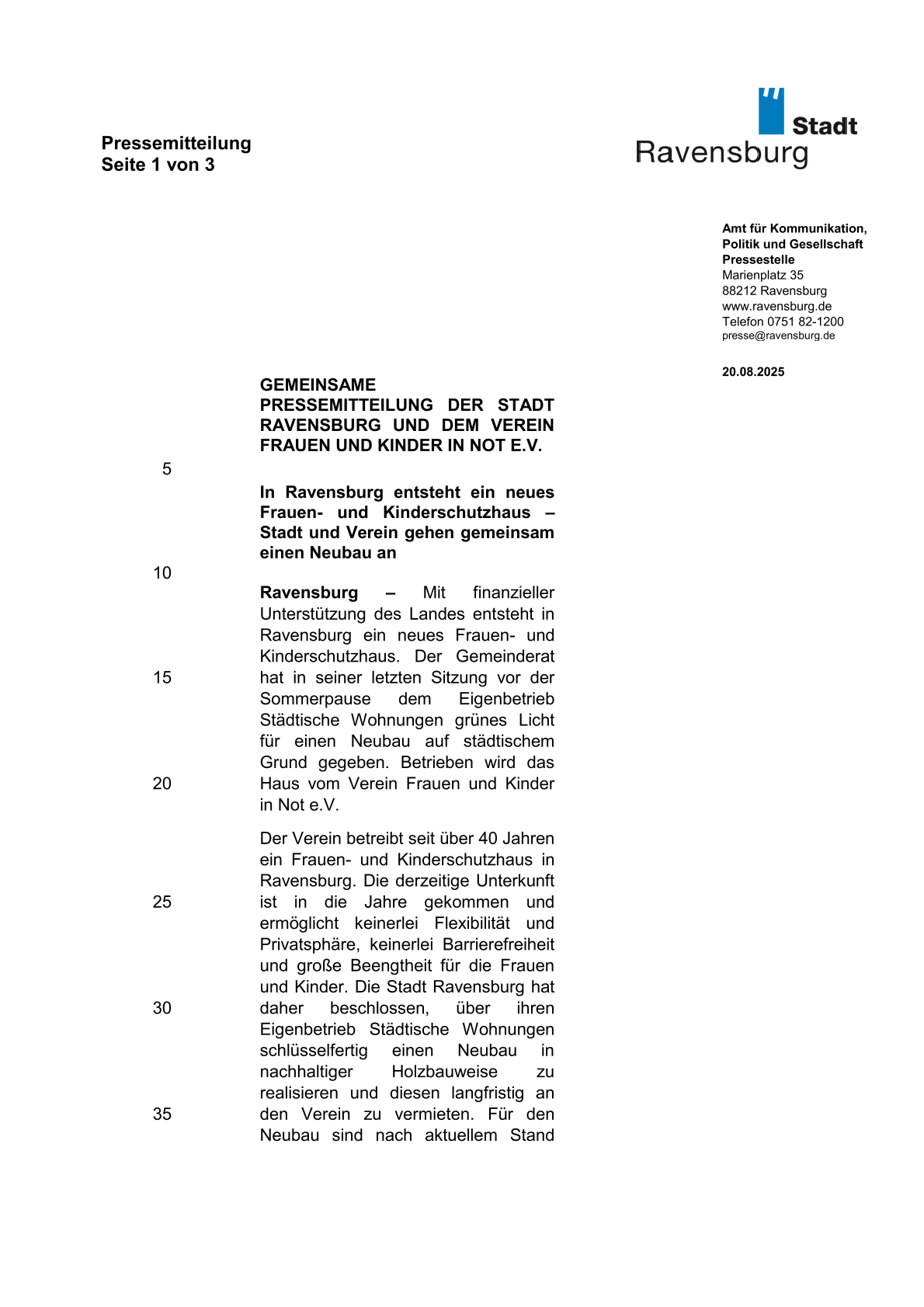 Neues Frauen- und Kinderschutzhaus in Ravensburg