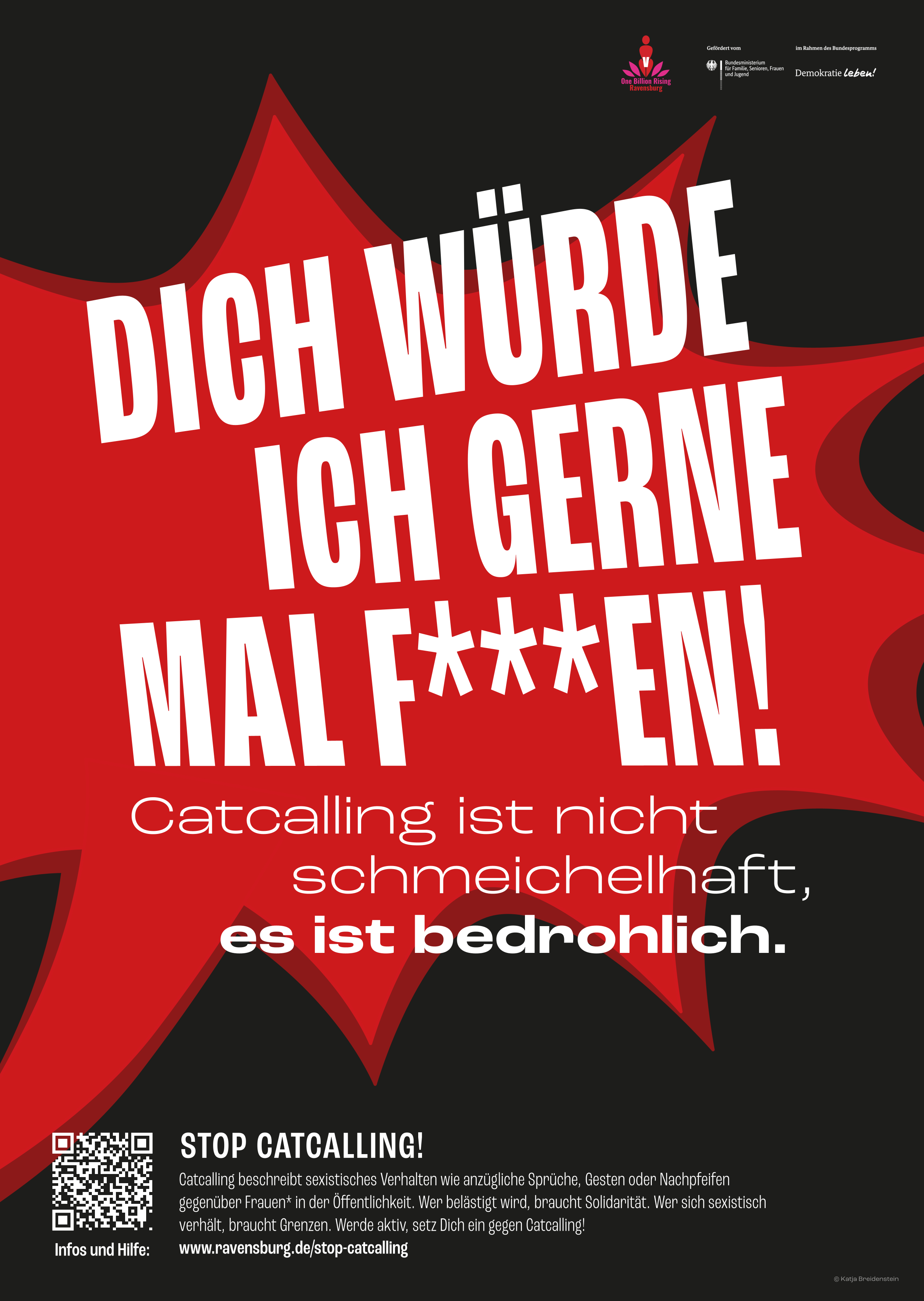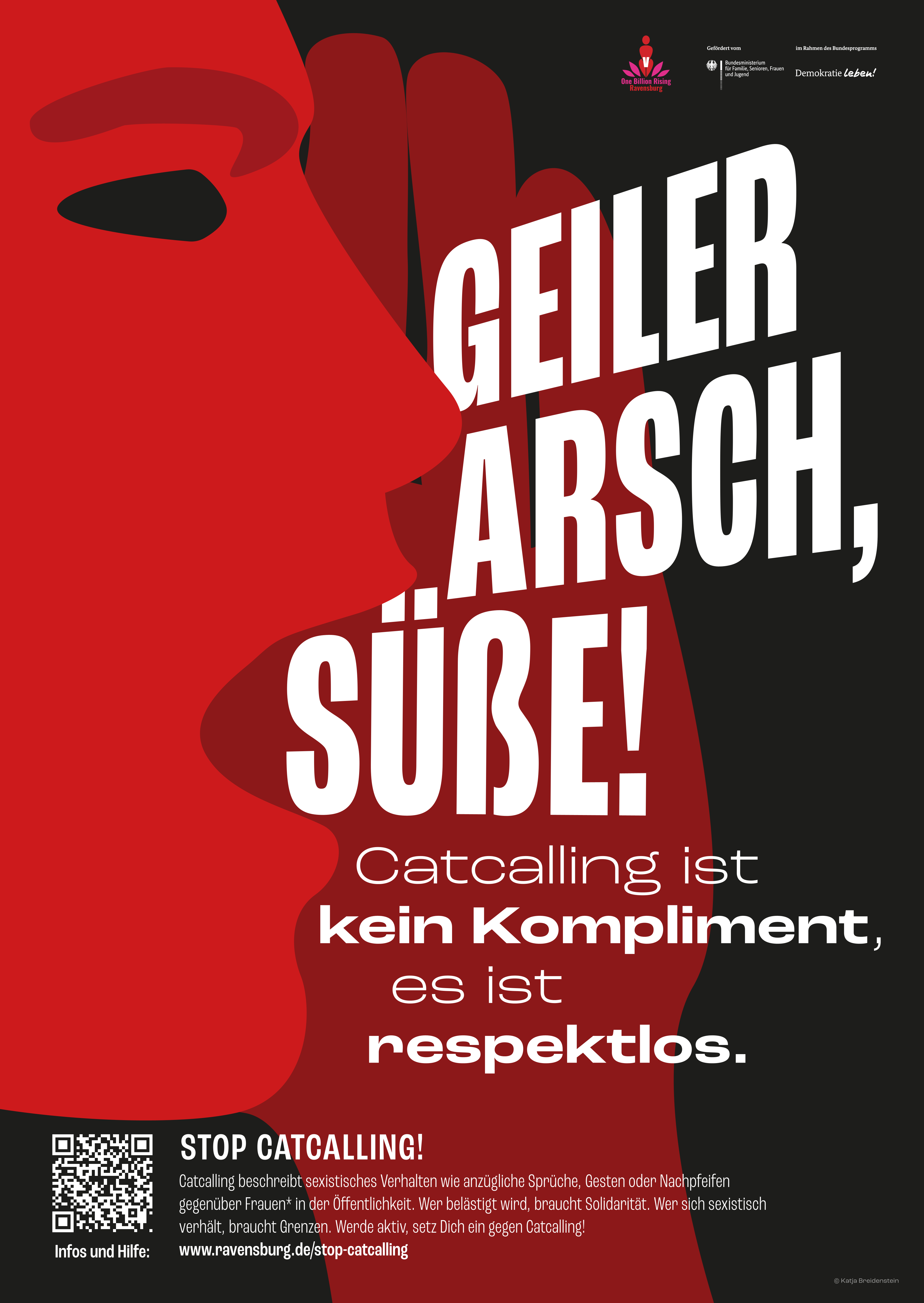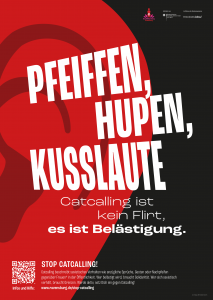 Plakate (Straßenplakatierung), Banner und Ausstellungen thematisierten „Catcalling“ (= anzügliche Sprüche, Gesten oder Nachpfeifen gegenüber Frauen in der Öffentlichkeit), denn Catcalling ist kein Kompliment, es ist eine Bedrohung.